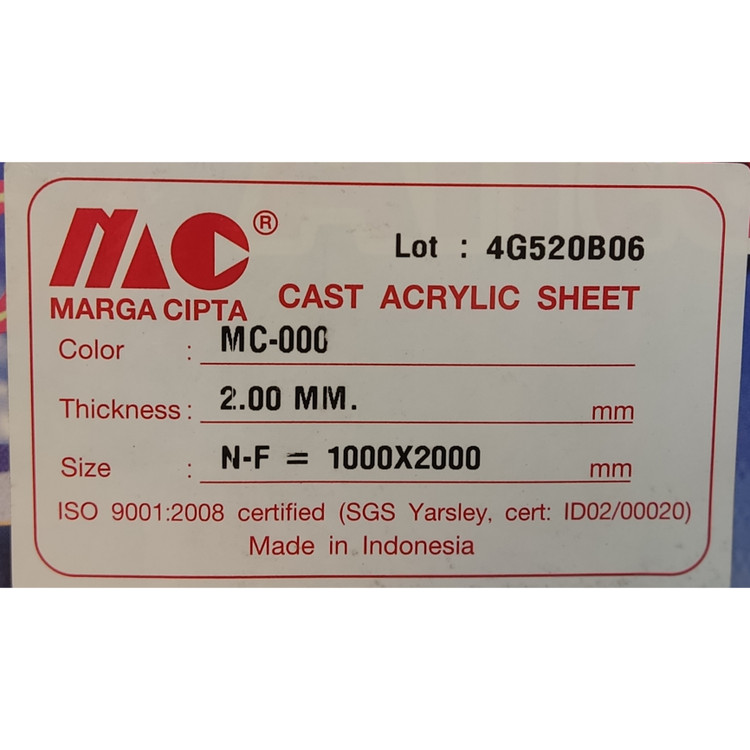 نوع جنس: برند MARGA CIPTA ساخت اندونزی ورق پلکسی کست