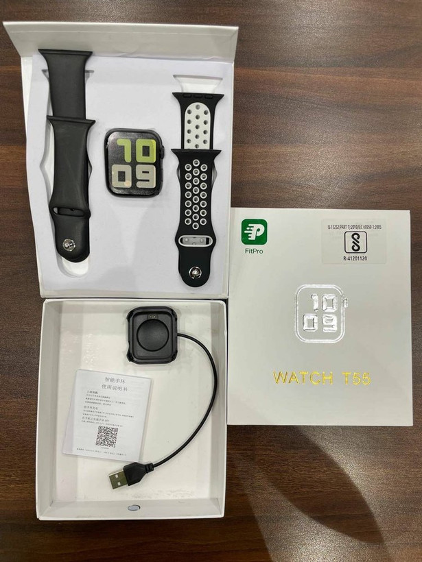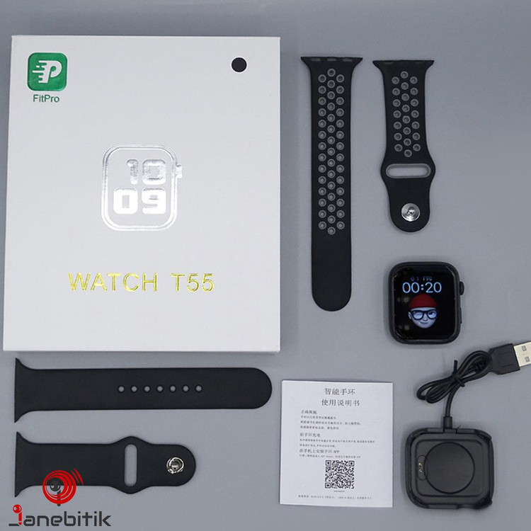 توضیحات: ساعت هوشمند مدل T55 (پک بزرگ اصلی) دارای دو عدد بند با کیفیت