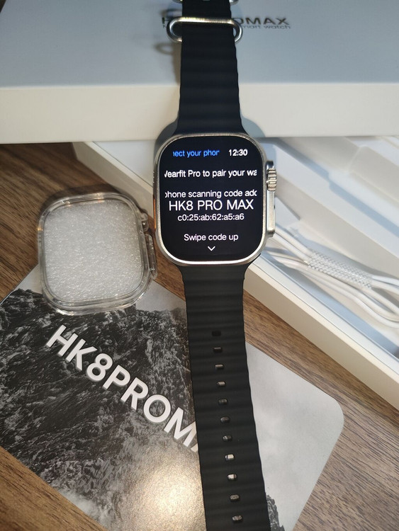 HK8 promax کاملا اورجینال (صفحه نمایش AMOLED) بند مشکی بدنه تیتانیومی
