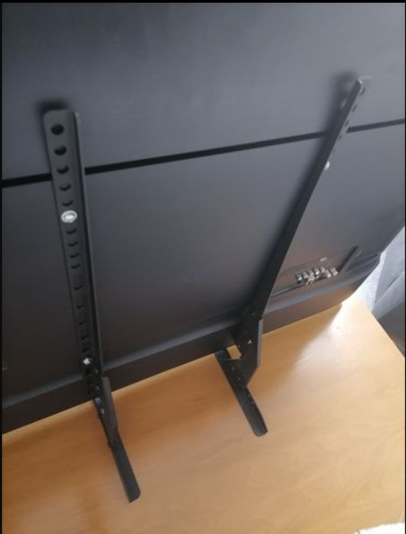 توضیحات: پایه رومیزی تلویزیون فلزی کاملا محکم و مقاوم از سایز ۳۷ تا ۶۰ اینچ که به پشت تلویزیون (محل اتصال پایه دیواری)متصل میشود