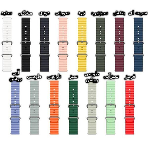 توضیحات : بند سیلیکونی بسیار مقاوم قفل و سگک فلزی با کیفیت دارای ضامن قف