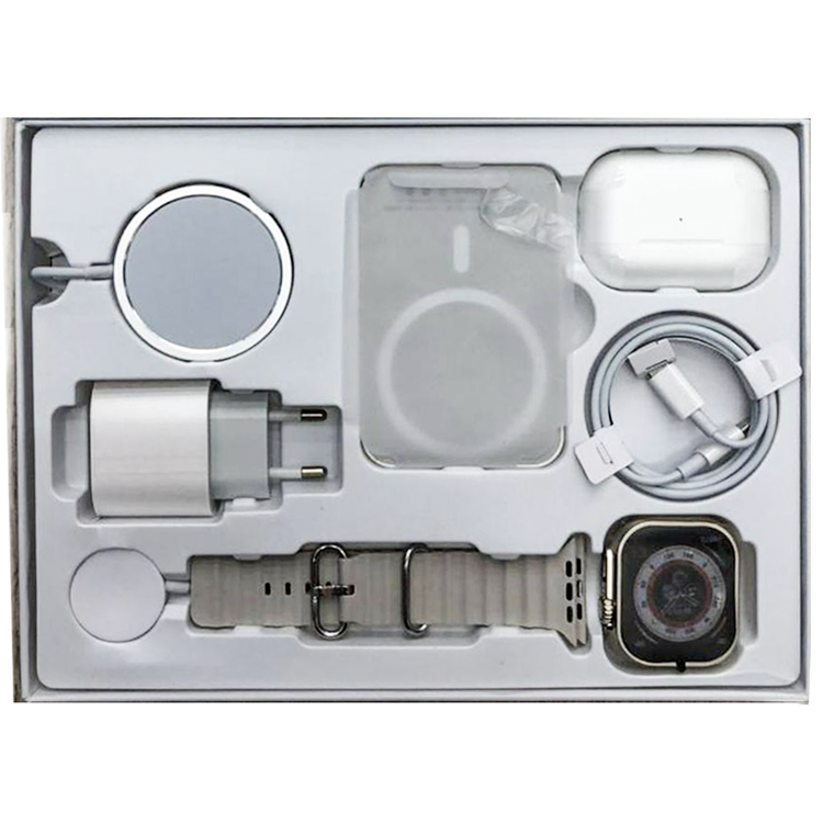 توضیحاتپک کامل ساعت هوشمند مدل X8 Unique Combination دارای یک عدد ساعت هوشمند که های کپی دقیق از روی مدل اپل واچ سری 8 اولترا سایز 49 میلیمتر است ✅اقلام داخل پک: ایرپاد پرو اپل بلوتوثی /ساعت هوشمند/ پاور بانک وایرلس(مگ سیف) و شارژر وایرلس و کلگی آداپتور