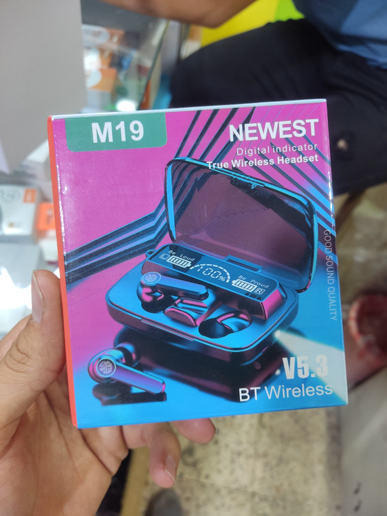 هندزفری بلوتوثی مدل M19 ورژن 5/3 به همراه کیس شارژر با کیفیت صدای مطلوب و رضایت بخش برای مشتریان عزیز