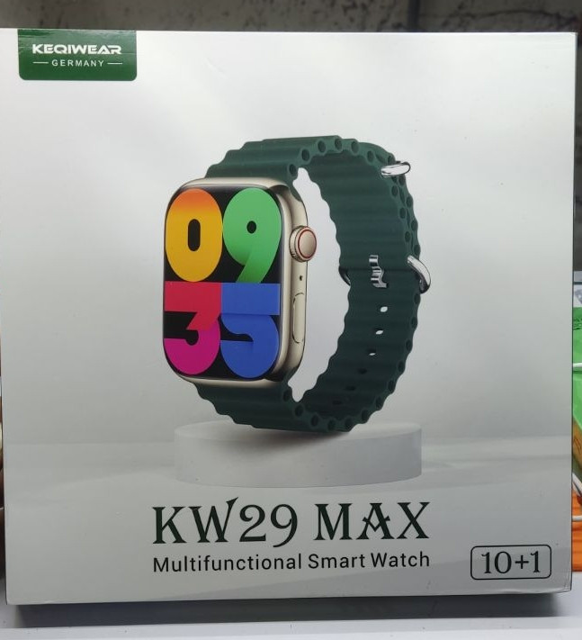 توضیحات: ✅برند : KEQIWEAR ✅مدل: KW29MAX ✅اندازه قاب : 45 میلیمتری ✅صفحه نمایش فول اسکرین ✅محتوی جعبه : ساعت+ ۱۰ مدل بند سیلیکونی + کابل شارژر وایرلس ساعت ✅امکانات : قابلیت مکالمه ، نمایش پیامکها و شبکههای اجتماعی ✅دارای سنسورهای سلامتی سنسور ضربان قلب