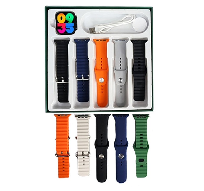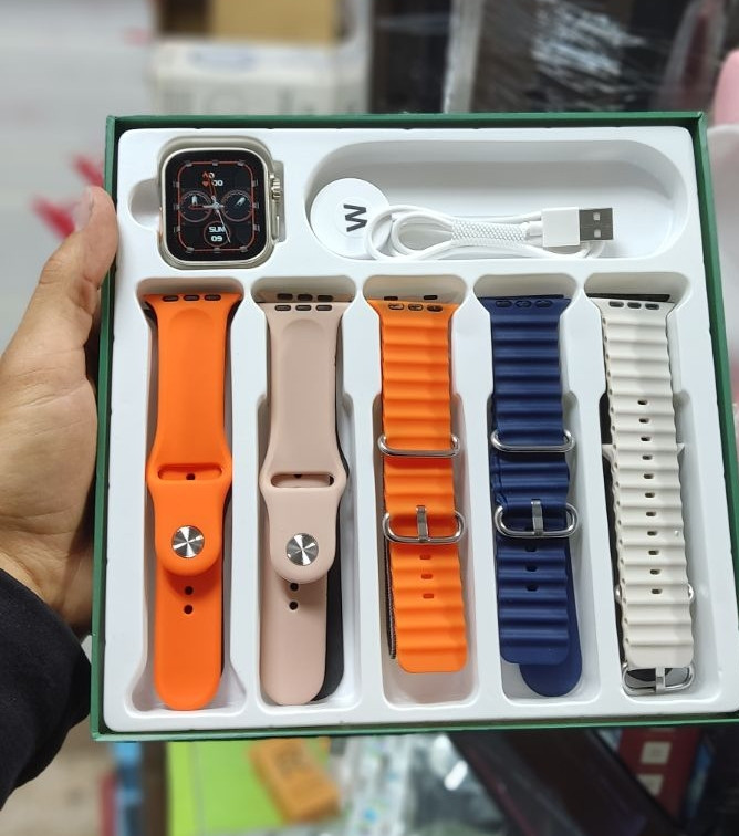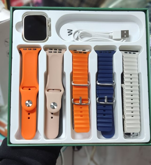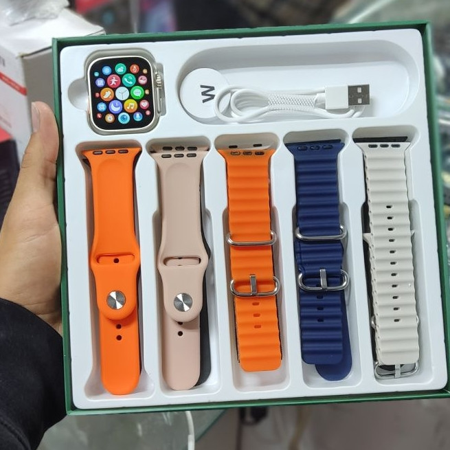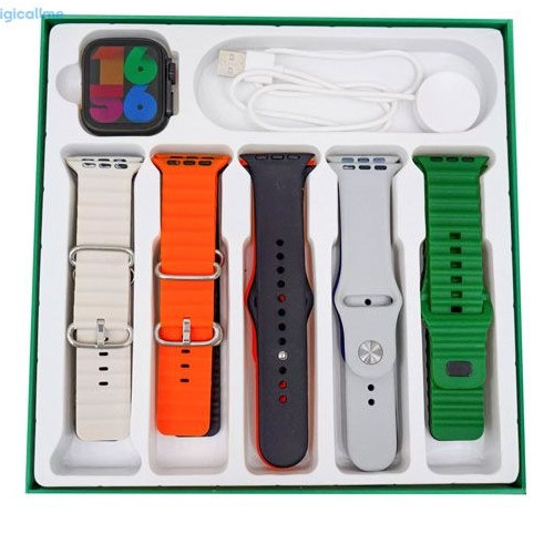 و همچنین این ساعت دارای 10 بند اضافه با کیفت و ضد حساسیت میباشد که شما رو از خریدن بند دیگه راحت کرده همراه 10مدل بند محتوی جعبه :ساعت + کابل شارژ وایرلس ساعت صفحه نمایش فول اسکرین امکانات : مکالمه و تماس نمایش پیامها و تمام شبکه های اجتماعی دارای سنسورهای سلامتی گام شمار ضربان قلب و… برنامه های ورزشی تخصصی پشتیبانی زبان فارسی و منوی تنظیمات فارسی دارای 3 دکمه فعال مجیک باتون
