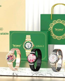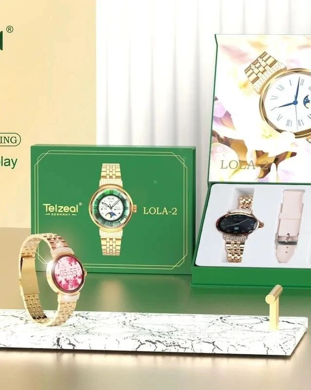 توضیحات: پک ساعت هوشمند کاملا زنانه برند telzeal مدل LOLA-2 دارای یک عدد بند استیل طلایی و یک عدد بند سیلیکونی صورتی