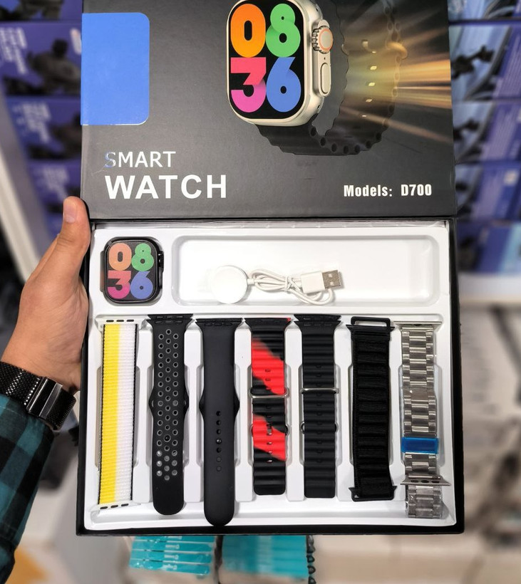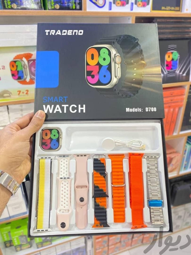 مشخصات: ساعت هوشمند برند TRADENO مدل D700 دارای۶بند سیلیکونی 1 بند فلزی/صفحه نمایش: 49 میلیمتری/صفحه نمایش: 1.9 اینچی/صفحه نمایش: Amoled /امکان کنترل تماس ها و برقراری تماس از طریق بلوتوث/دارای سنسورهای سلامتی گام شمار، ضربان قلب ، فشار خون /