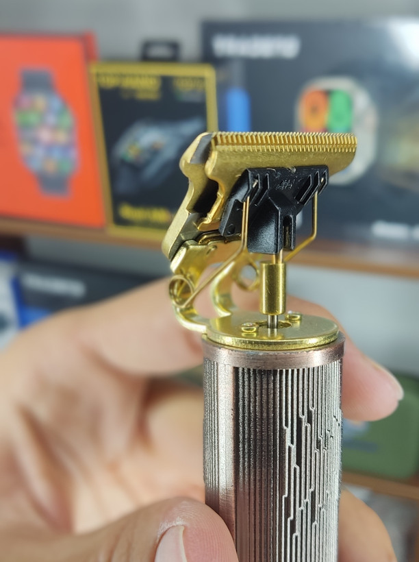 سایر امکاناتتیغهی این ماشین اصلاح از جنس تیتانیوم طلایی است و حرفهای، تیز، ضدآب و قابل جدا شدن میباشد. با قدرت پایدار و صدای کم، این ماشین اصلاح بهترین تجربه را برای برش صاف و یکنواخت فراهم میکند. تیغههای شکل T با دندانههای تیز برای برش ریش و موی بدن مناسب است