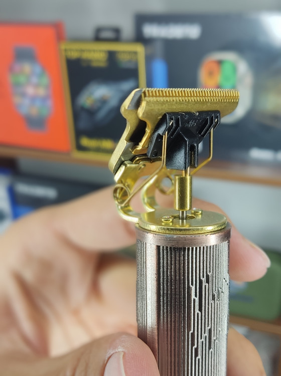تیغهی این ماشین اصلاح از جنس تیتانیوم طلایی است و حرفهای، تیز، ضدآب و قابل جدا شدن میباشد. با قدرت پایدار و صدای کم، این ماشین اصلاح بهترین تجربه را برای برش صاف و یکنواخت فراهم میکند. تیغههای شکل T با دندانههای تیز برای برش ریش و موی بدن مناسب است