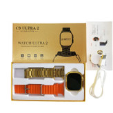 ساعت هوشمند از سری اولترا طلایی مدل C9-ultra2 ضد آب کیفیت HD پاسخگویی و مکالمه و باند و موزیک و تمام صفحه / ضربان قلب /کیلومترشمار /پشتیبانی منو فارسی باند کیفیت عالی