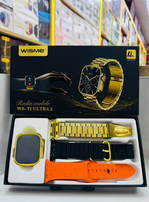 ساعت هوشمند طلایی مدل WS-71 ultra 2 دارای 3 عدد بند