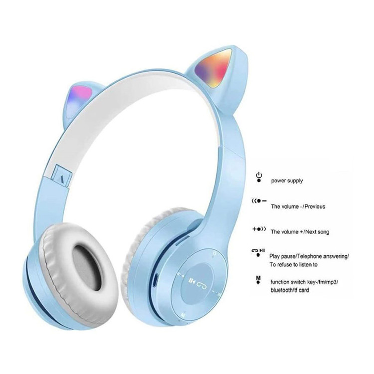 هدفون بلوتوثی طرح گربه ای مدل p47m محصول فانتزی با شکل گربه ای می باشد که بسیار خاص پسند کودکان و نوجوانان می باشد.با نور پردازی که این محصول دارد بسیار به زیبایی بر روی سر جلوه میکند.