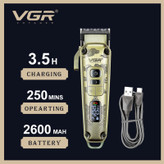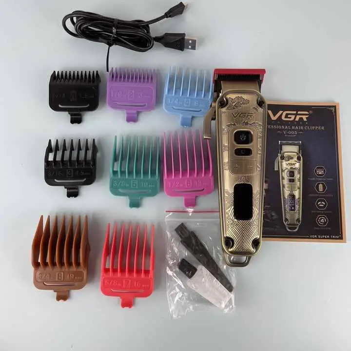 امکانات و قابلیتها: دارای صفحه نمایشگر LED / دارای قابلیت افزایش سرعت موتور از 5 هزار تا 7 هزار دور در دقیقه/ نوع تیغه تیپر جنس تیغه کروم روکش الماسی /جنس بدنه فلزی /همراه 8 عدد شانه در سایز های: (1/5_ 3_ 4.5_6_10_13-19-22) /باطری 2600 میلی آمپر/ نگهداری شارژ 4 ساعت