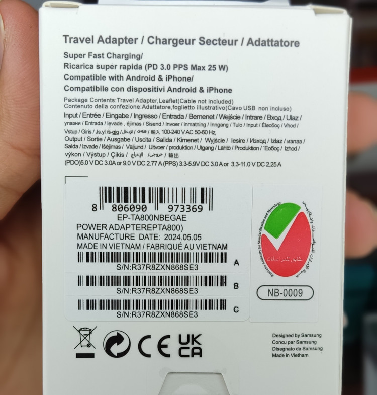 توضیحات: شارژر گوشی های سامسونگ با توان 25w کیفیت اورجینال