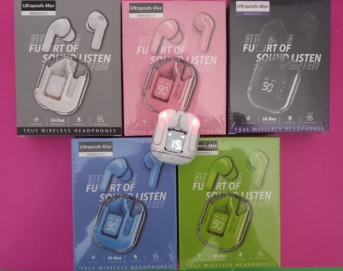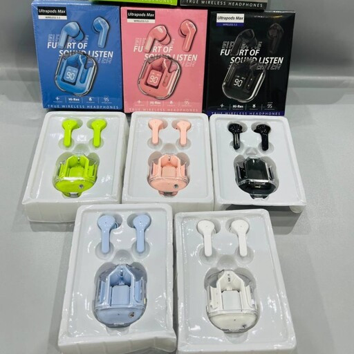 ایرپاد ✅مدل Ultrapods Max ✅باکس شیشه ای ✅ دارای نمایشگر شارژ LED ✅نوع اتصال : بلوتوث ✅ظرفیت باتری باکس : 250 میلی آمپر ✅ساعت ظرفیت باتری هر گوش : 30 میلی آمپر ساعت ✅مقدار زمان مکالمه : 4 ساعت مقدار ✅ زمان موسیقی : 3 ساعت ✅ فاصله اتصال : 15 متر ✅دارای نمایشگرLED نشان دهنده درصد شارژ و میزان شارژ هر گوش نویز گیر ✅راه اندازی سریع و آسان ✅رابطهای:USB Type-C ✅قابلیتهای مقاومتی: مقاومت در برابر آب