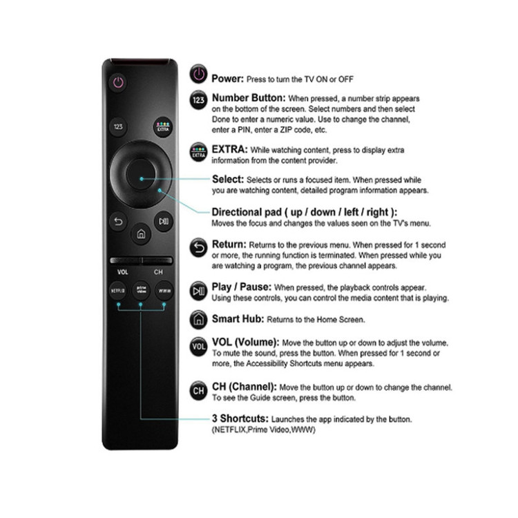 توضیحات: کنترل تلویزیون سامسونگ دارای 3 عدد دکمه اضافه مخصوص وب و اینترنت