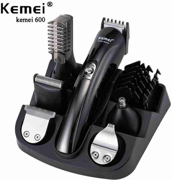ست ماشین اصلاح کیمی مدل KM-600 دارای موتور پر قدرت و تیغ های فوق العاده حرفه ای می باشد. این دستگاه برای کوتاهی مو اصلاح کامل مو و برای موهای گوش و بینی و ابرو و برای مدل دار کردن ریش مناسب است که برای هر کار سری جداگانه دارد. شانه همراه با این دستگاه قابل تنظیم است که می توانید سایز های مختلف اصلاح کنید. این دستگاه دارای 4 عدد شانه ثابت و یک شانه متحرک است و این دستگاه دارای یک پایه است که می توانید سری های دستگاه را روی پایه قرار بدید.