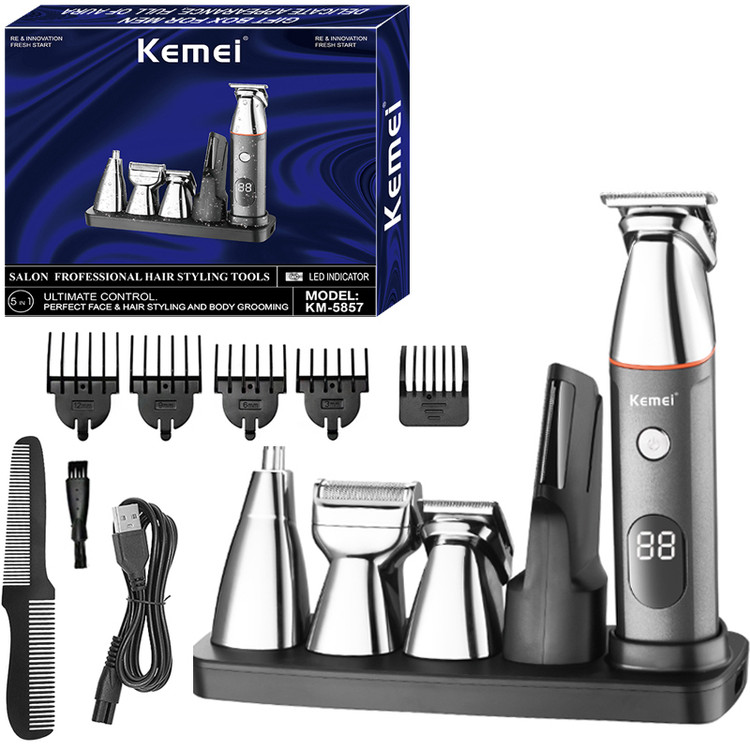 ست ماشین اصلاح موی سر، صورت و بدن شارژی Kemei Hair Cutting Machine Barber KM-5857