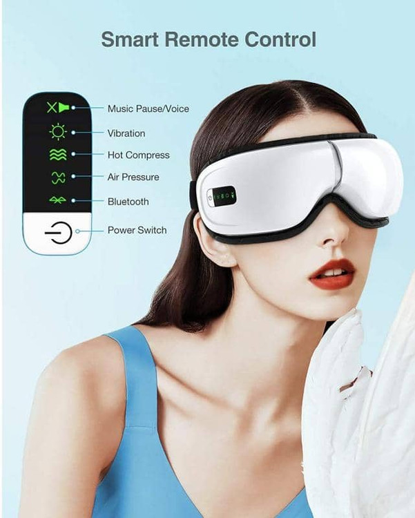 یک ماساژور چشم حرفه ای دارای مجوز اتحادیه اروپا است. که تمامی نیاز های چشمان شما را بعد از خستگی و دردها و گرفتگی ها برطرف می کند. محفظه داخلی این دستگاه که برروی چشم ها و کناره های چشم قرار می گیرند. این ماساژور با قابلیت ویبره ای و با استفاده از کیسه های هوا ماساژ را انجام می دهد و با ویژگی گرما دهی، کیفیت ماساژ را دو چندان و تاثیر گذاری آن را چند برابر می کند. گرما باعث آرامش و تسکین چشم ها و شقیقه شده و باعث می شود شما در حین ماساژ لذت بیشتری را تجربه کنید، اما ویژگی دیگری در این محصول که استفاده از آن را لذت بخش تر کرده، امکان پخش موسیقی در حین ماساژ است
