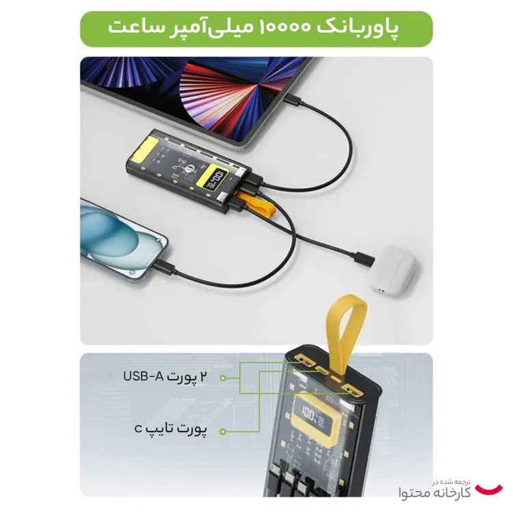 پاوربانک 10000 میلی آمپر گرین لاین مدل GNTRAPB10K - Transparent Pro
