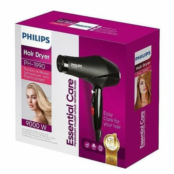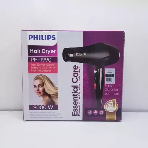 توضیحات: سشوار فیلیپس مدل PH-1990 قدرت ۹۰۰۰ وات با باد سرد و متمرکزکننده بدون شانه