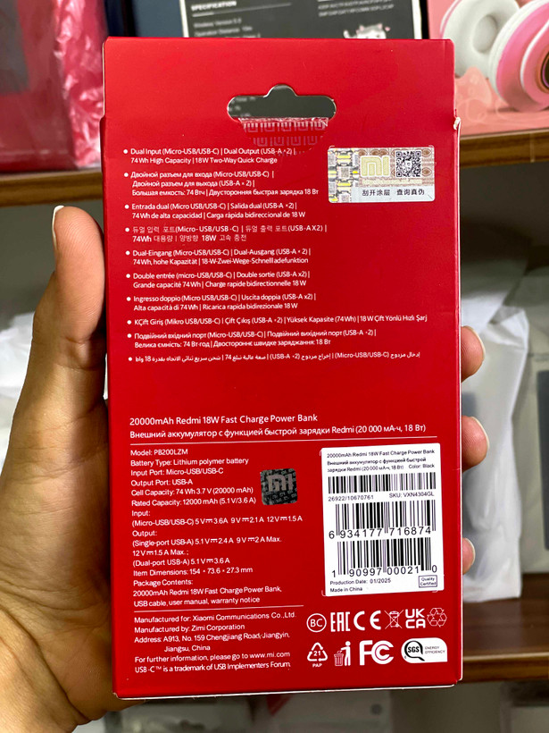 توضیحات: پاور بانک شیائومی مدلPB200zm ظرفیت 20000هزار میلی آمپر با کیفیت اورجینال اصل به فروش میرسد. دارای سه خروجی فست شارژ و تضمین 20هزار کاملا واقعی باطری لیتیوم پلیمر